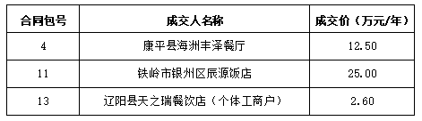 辽宁省高速公路高花、新民和康平等12个服务区餐厅经营招商项目(项目编号:RHZB0320-2025)评审工作于2025年11月20日在辽宁仁合项目管理有限公司会议室结束。成交候选人公示按规定程序已结束,招商人依据评审小组向招商人提交的评审报告确定成交人,公告期至2025年12月15日结束,现将成交结果公告如下: